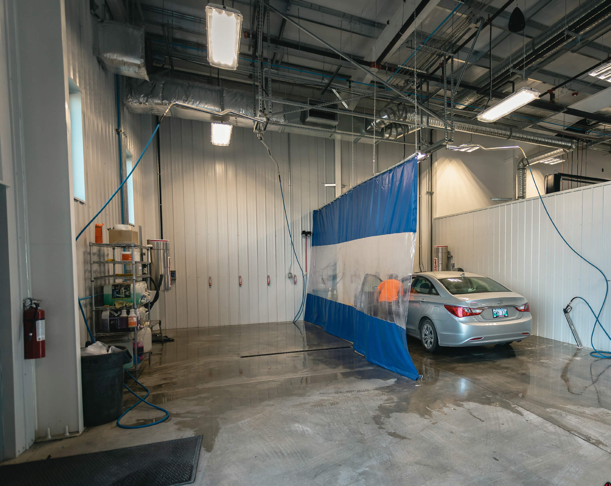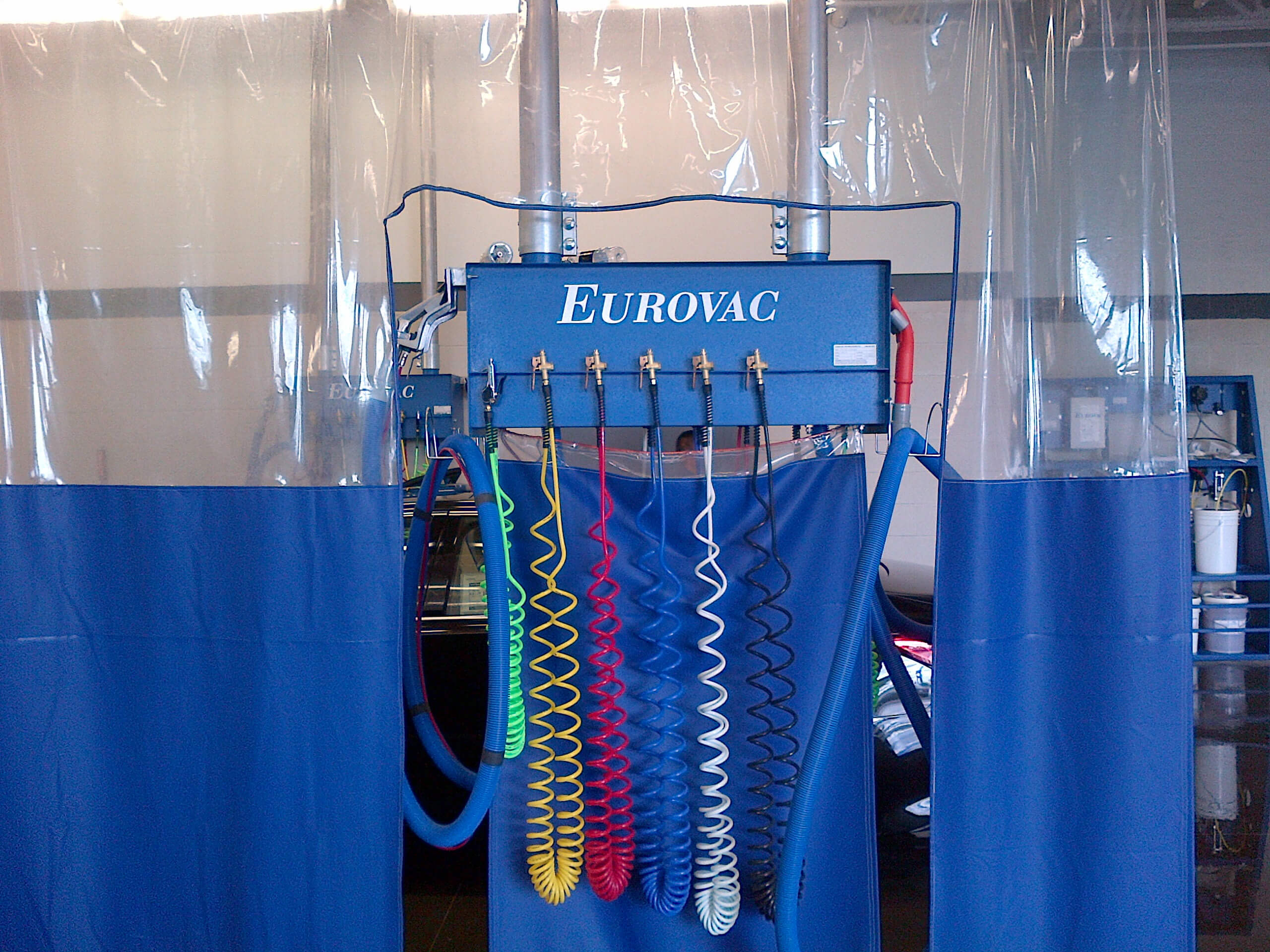 Vehicle exhaust extraction systems, chemical dispensing, HP wash systems, in-bay individual vacuums to centralized vacuums systems