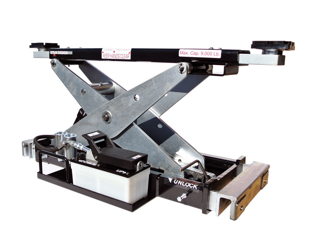 Rolling bridge jacks for all makes and models of 4 post, scissor racks and lube pits.